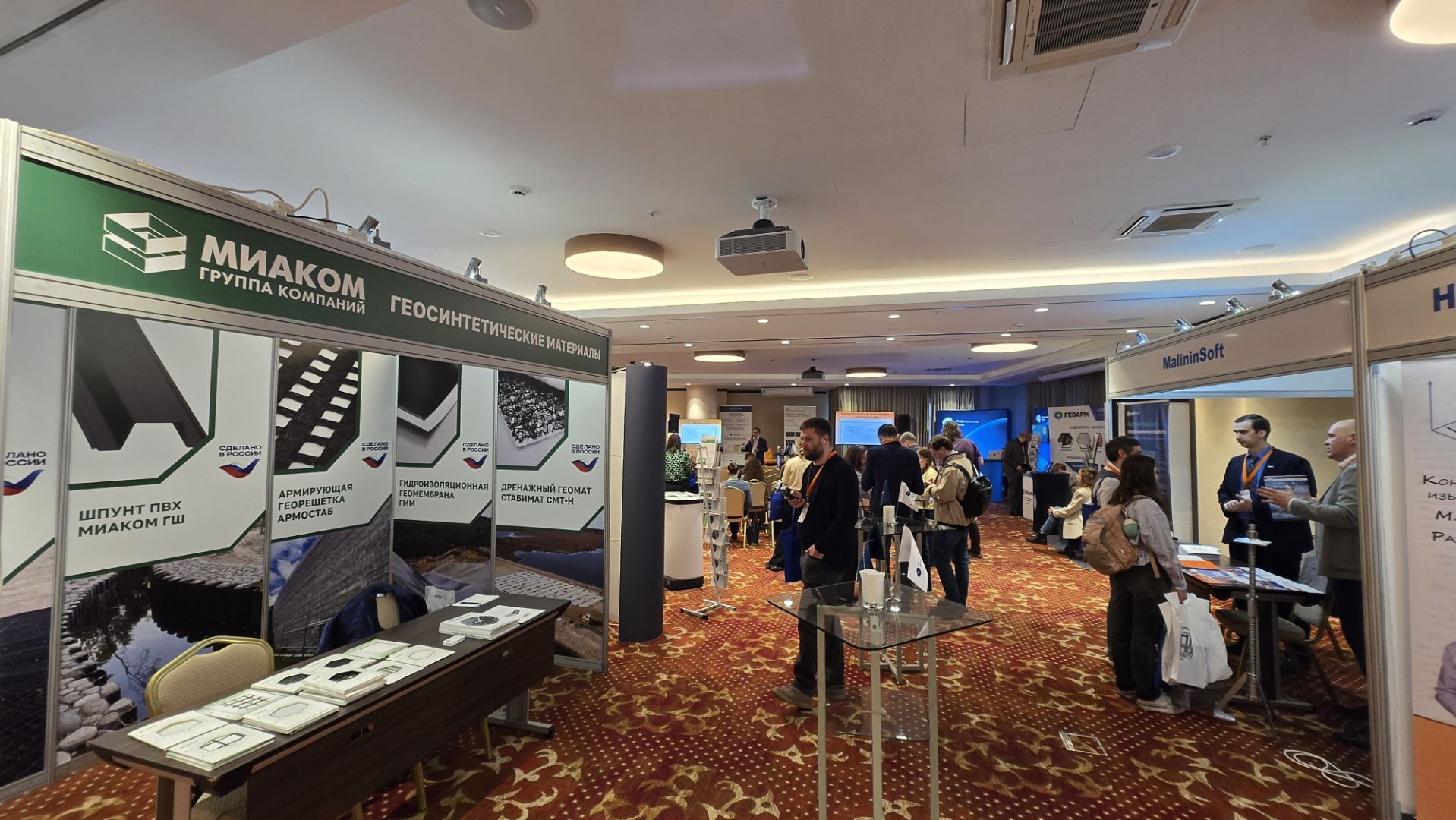 На стенде № 9 специалисты «МИАКОМ» консультировали по применению геосинтетики в нестандартных задачах. Итог: новые контакты с институтами и подрядчиками, запросы на разработку техдокументации, обратная связь по расчётным данным и форматам выдачи материалов.